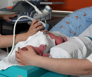 Jedes Neugeborene wird kinderärztlich untersucht und kann bei gegebener Notwendigkeit intensiver kinderärztlich betreut werden.